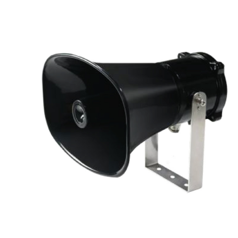For outdoor environment external speaker can be attached to intercom or telephone unit (ATEX version available) and for indoor environment telephone and intercom speakers can be used.